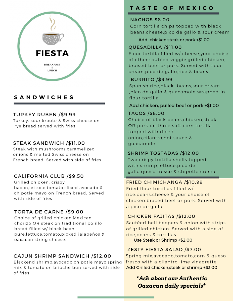 Whether you stop by for a late breakfast or a leisurely lunch, every visit promises to be a delightful journey of flavors at Fiesta Cafe Chatham. Don't miss out on this hidden gem!